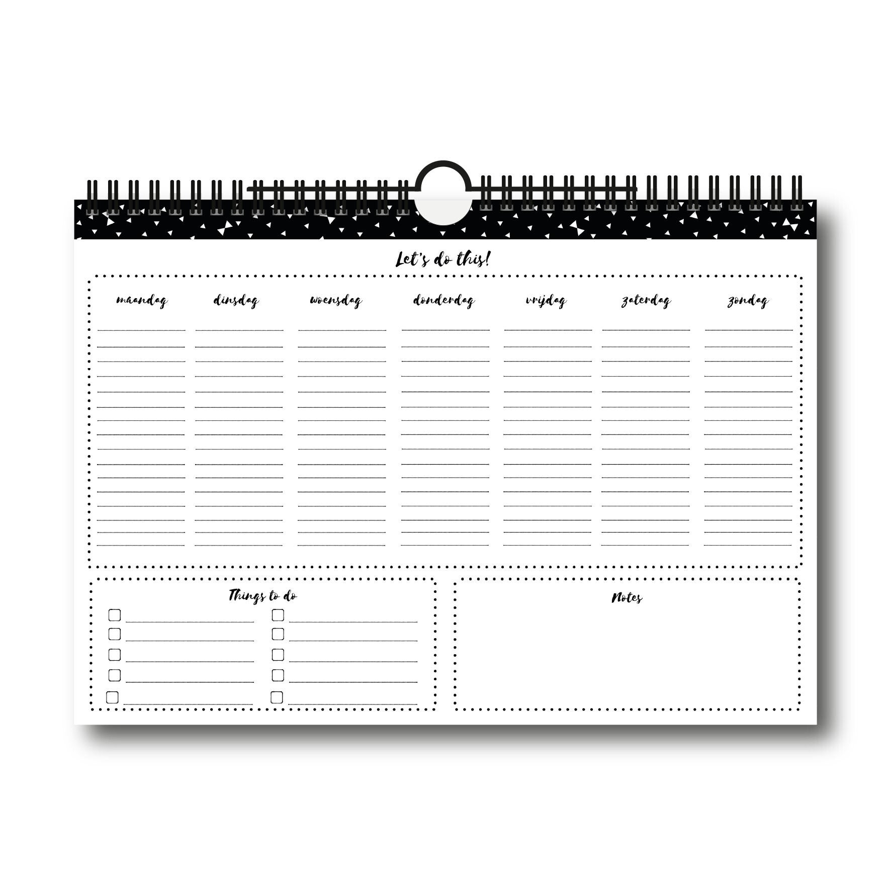 Deze weekplanner is ideaal om je week mee te plannen en verplichtingen bij te houden. De planner heeft een weekoverzicht per pagina en daarnaast is er ruimte voor verjaardagen, things to do en notities.