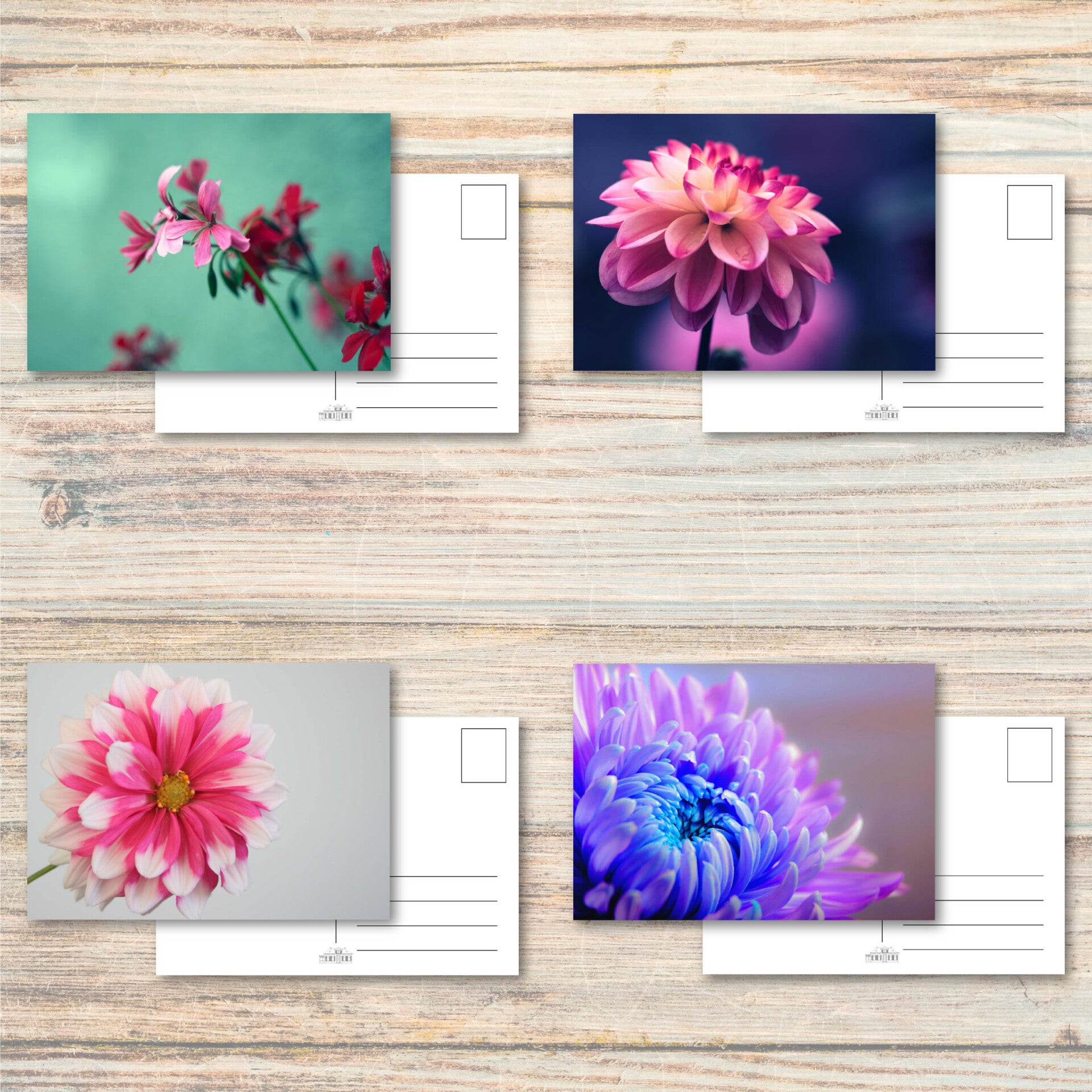 Kaartenset bloemen: enkele kaarten gedrukt op 260 grams stevig papier.
