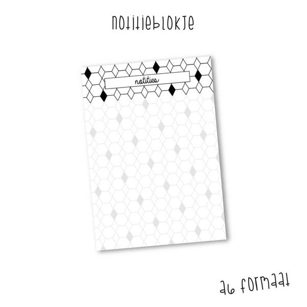 - Notitieblokje op A6-formaat aan de bovenzijde gelijmd op karton.
