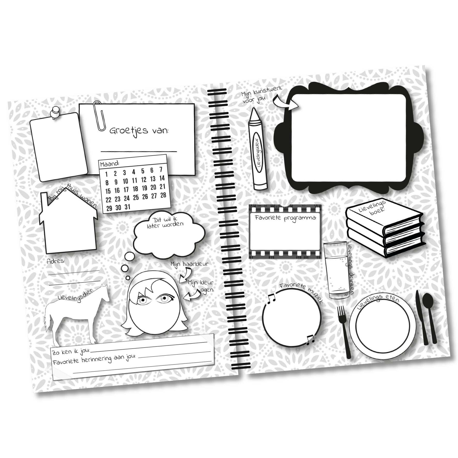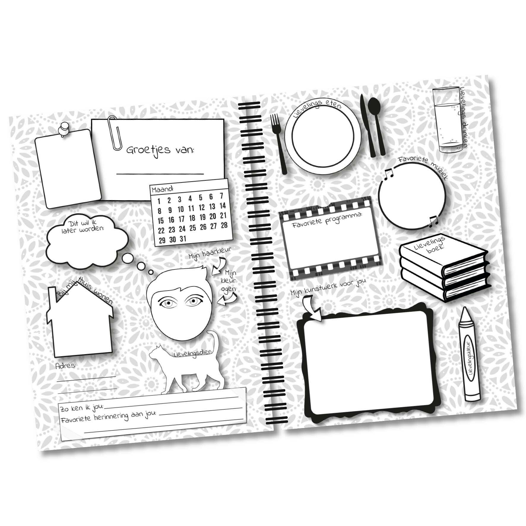 Wanneer de pagina’s zijn ingevuld ontstaat er mooi kleurrijk boekje.