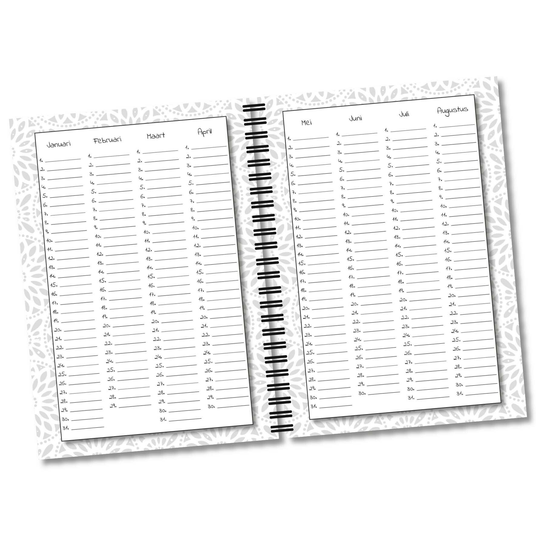 Achterin kun je de verjaardagen van iedereen opschrijven.