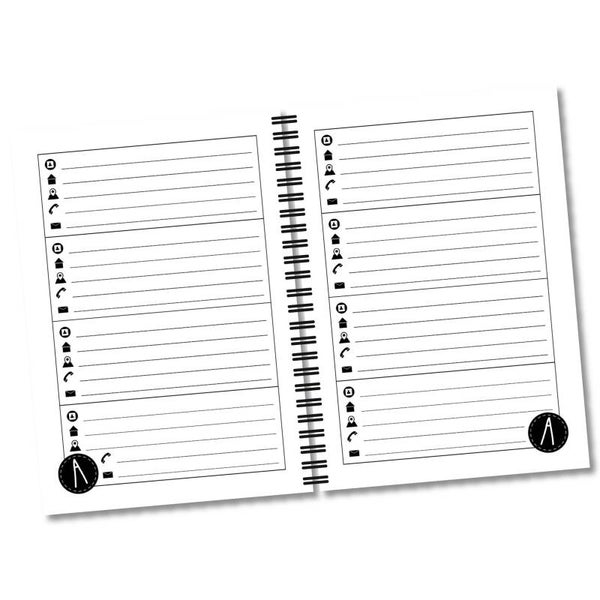 In mijn adressen invulboek is er ruimte voor 4 pagina’s per letter aan namen, behalve de Q, X en Y – deze hebben 2 pagina’s. Daarnaast is er nog ruimte voor favoriete adressen zoals uitjes en restaurants.