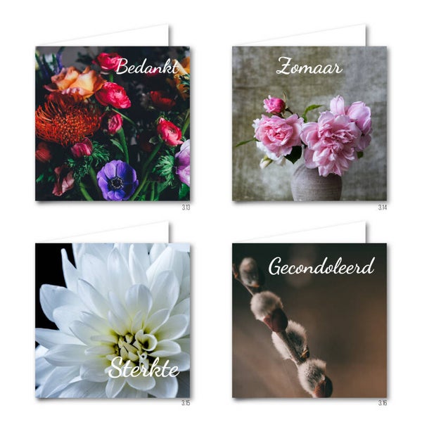 Wilt u een andere samenstelling van de kaartensets, neem dan contact op via info@drukkerijdepastorie.nl of geef de juiste aantallen door via opmerkingen tijdens het bestellen. Combineren tussen de verschillende sets mag.
