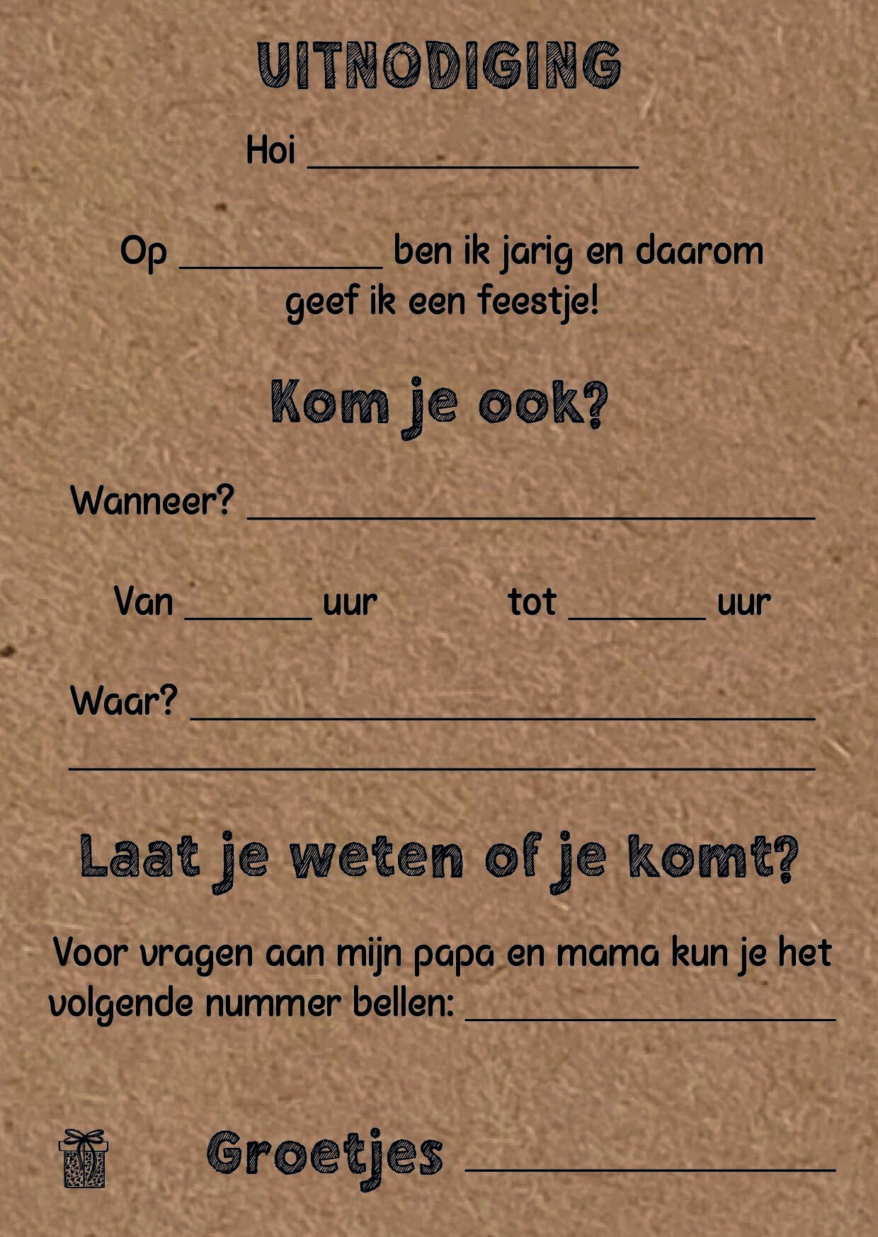 Hoera een feestje!!! Nodig je vriendjes en vriendinnetjes uit met deze kaarten.Dit is een enkele kaart gedrukt op 230 grams kraft papier en wordt geleverd met enveloppen.