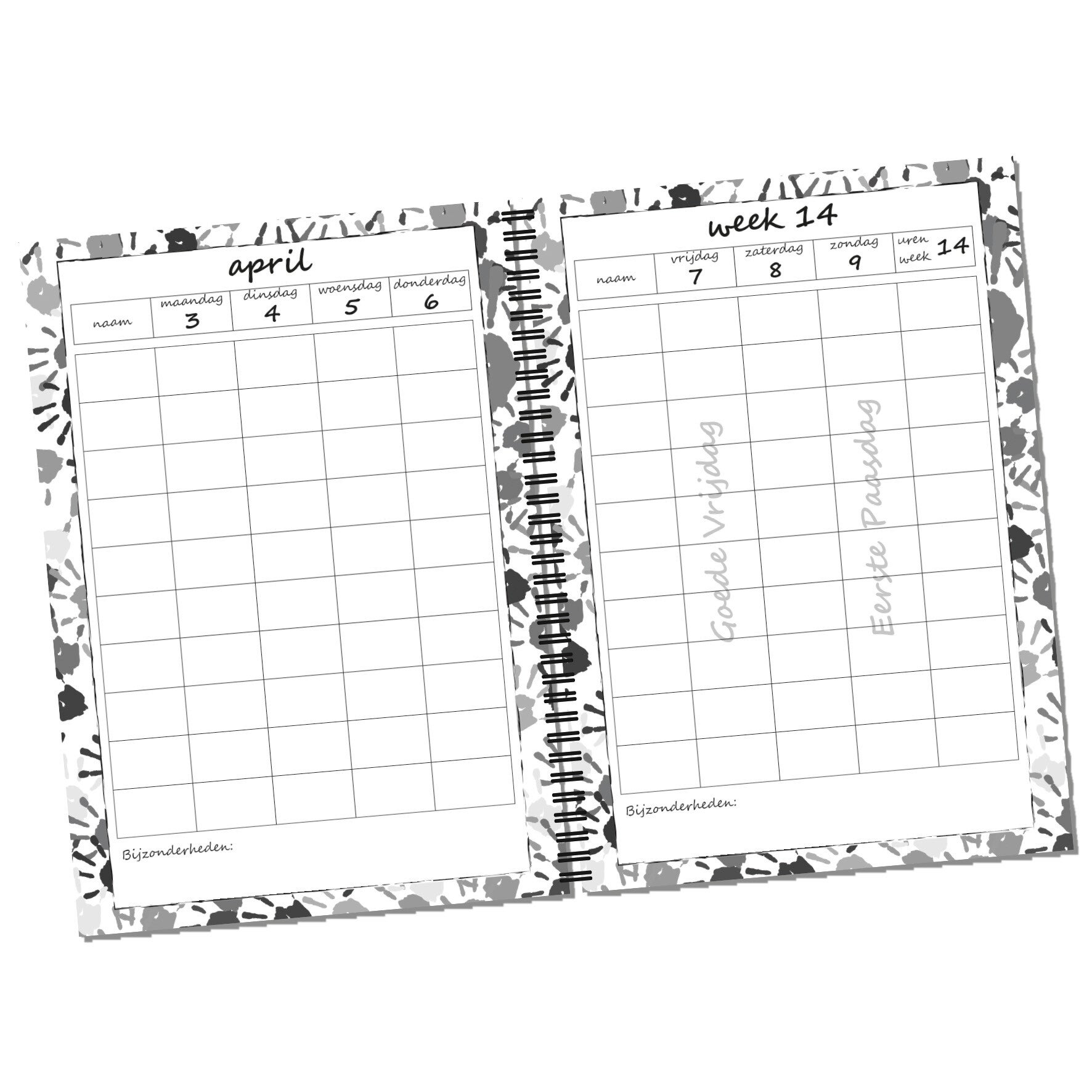 De agenda heeft een weekindeling en bestaat uit 52 weken.