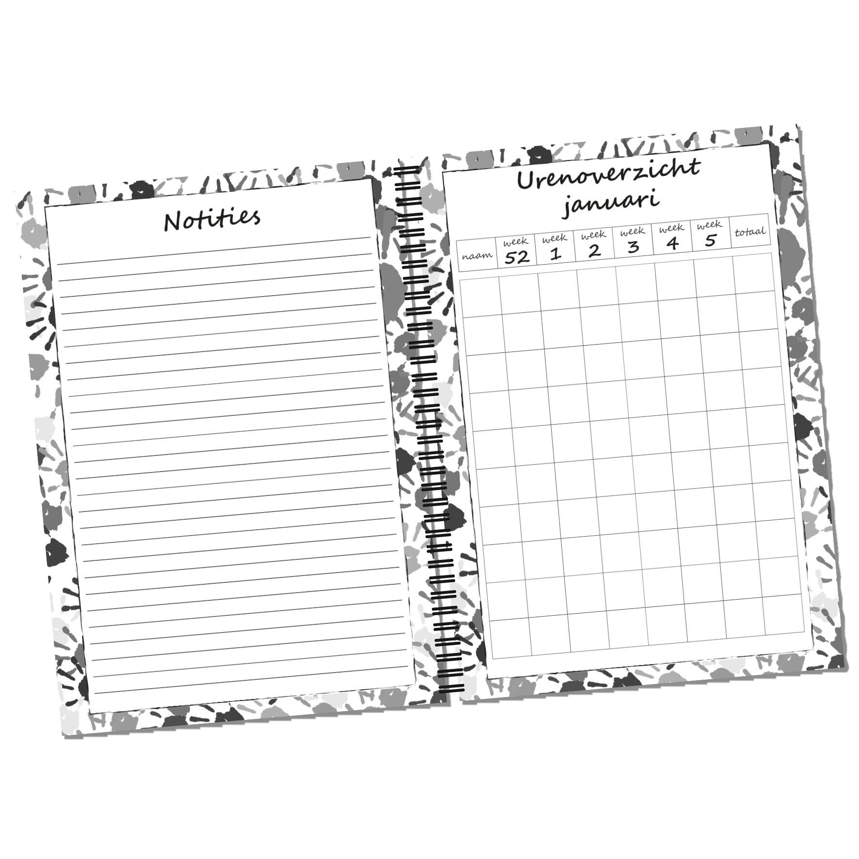 Binding: Zwarte Wire-O aan de linkerzijde