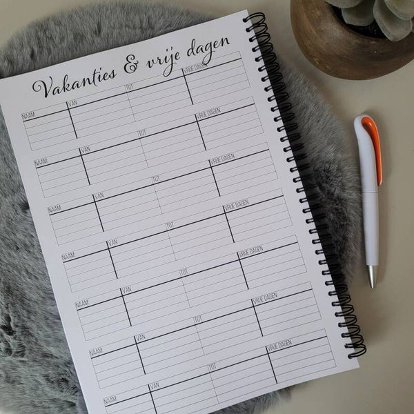 De agenda heeft een weekindeling en bestaat uit 52 weken.